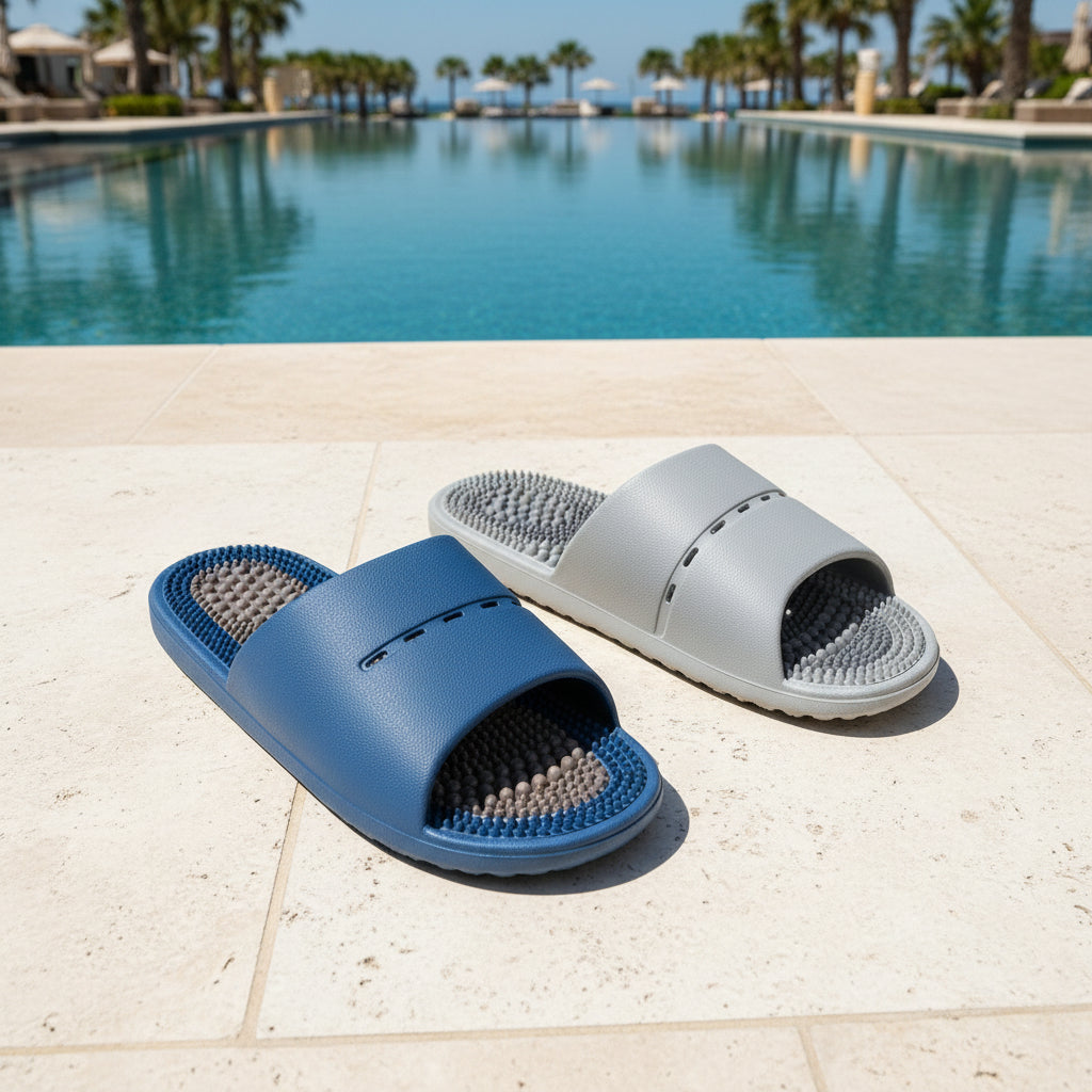 Découvrez le confort ultime avec nos sandales massantes. Dotées d'une semelle ergonomique qui stimule vos pieds à chaque pas, elles allient bien-être et légèreté. La surface antidérapante garantit une stabilité optimale sur sols mouillés. Parfaites pour la détente quotidienne, ces sandales offrent un soutien naturel tout en restant incroyablement léger. Transformez vos moments de repos en véritable expérience de relaxation
